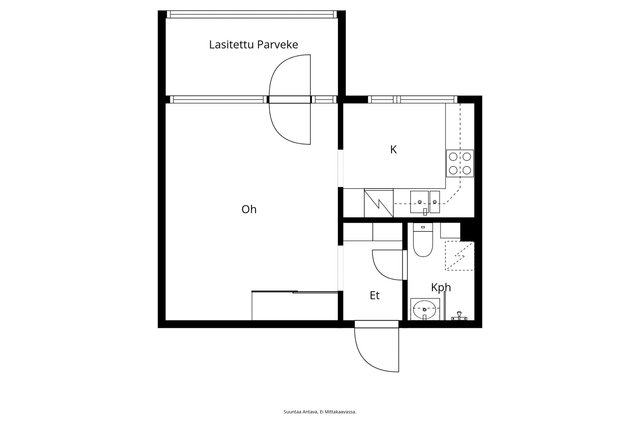 - Ei tarkistusmitattu. Pinta-alat saattavat tämän ikäisissä kohteissa (yhtiö rekisteröity ennen 01.01.1992) poiketa olennaisestikin asuinrakennusten nykyisten mittaustapojen ja standardien (SFS 5139) mukaan laskettavasta asuintilojen pinta-alasta. Pinta-ala voi siis olla edellä mainittua pienempi tai suurempi.