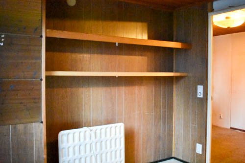- Iso olohuone, jossa muovimatto, puolipaneeli ja maali.