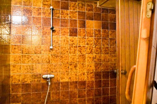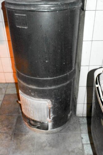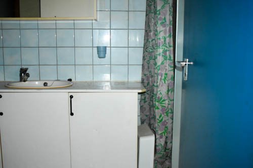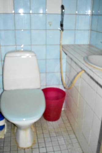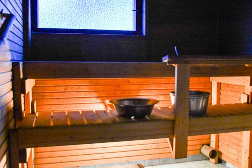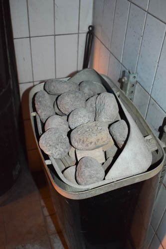 - Alakerrassa laatoitettu pesuhuone, jossa pata veden lämmitykseen ja paikka pyykkikoneelle.