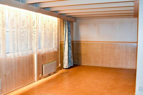 - Yläkerran makuuhuoneessa muovimatto ja lasikuitutapetit. Alakerran makuuhuone on entinen takkahuone.