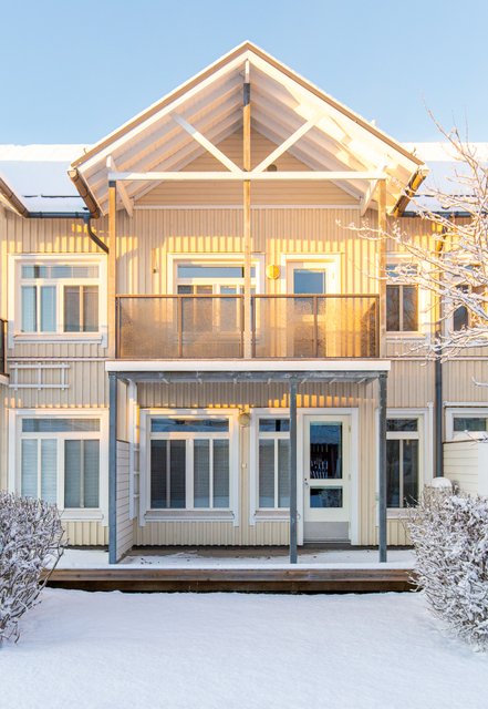 Asunnon alakerrassa on avoin pohjaratkaisu. Siellä on valoisa, moderni ja kutsuva keittiö integroiduilla kodinkoneilla. Ja olohuone, josta on kulku aurinkoiselle terassille. Alakerrassa löytyy myös pesutilat ja sauna modernilla lasiseinällä ja upotetulla kiukaalla sekä wc. Asunnossa on ilmalämpöpumppu, joka tuo lämpöä pakkaspäiviin talvipäivinä ja viilennystä kuumimpiin kesähelteisiin.