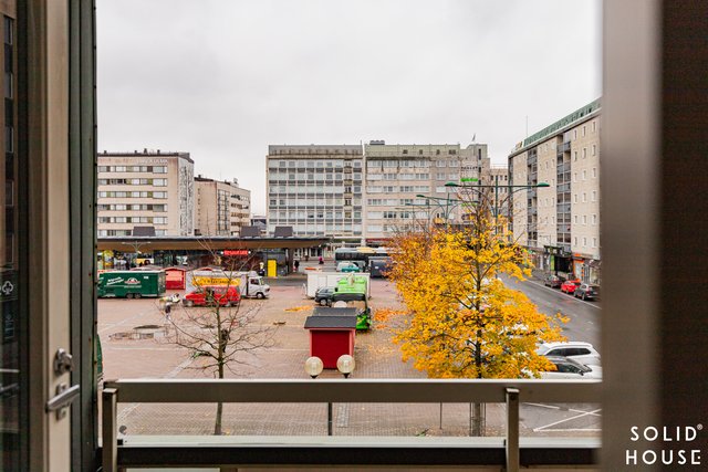 Ikkunoista avautuvat näkymät sisäpihalle ja parvekkeelta kauppatorille, mikä tuo mukavaa valoa ja eloa. Tilassa on kaksi wc:tä (toinen suunnitelmassa kph).