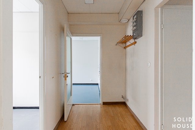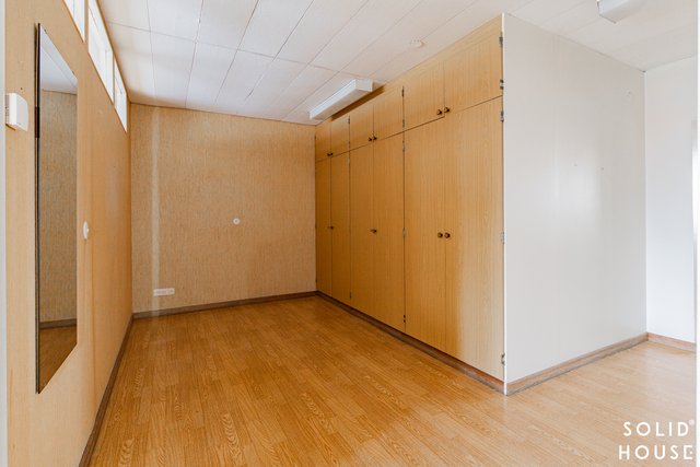 - Pienemmässä huoneessa lattiassa linoleum ja isommassa muovimatto. Seinät maalattu. Eteisessä lattiassa muovimatto. Seinät tapetoitu. Kaapistot.