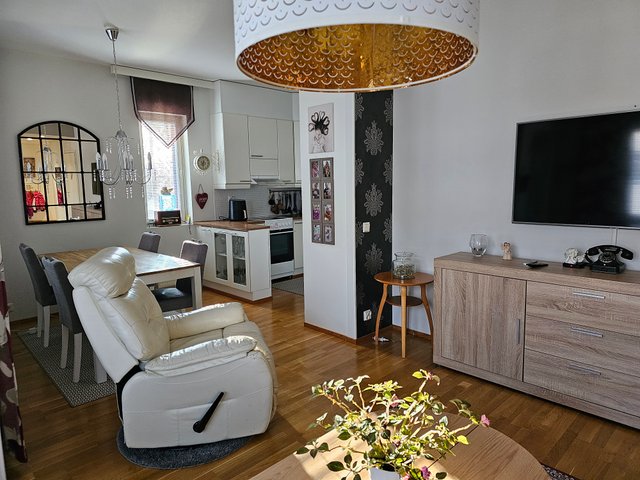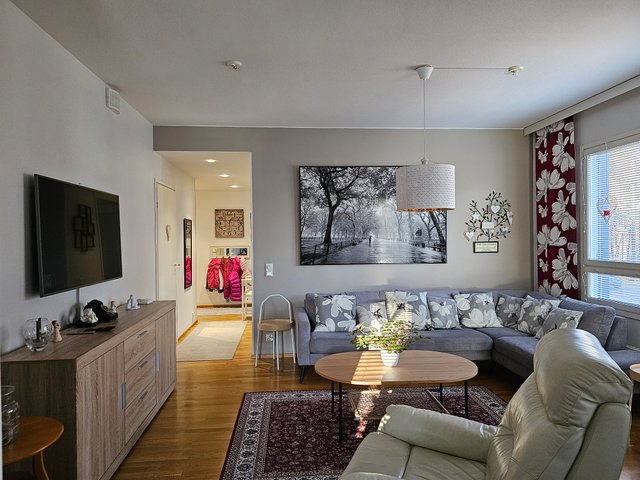V.2008 valmistuneessa taloyhtiössä hyvin pidetty ja valoisa kolmio. Olohuoneen yhteydessä ruokailutila, jossa on tilaa isommallekin ruokapöydälle. Hyvänä lisänä kiinteä vitriinikaappi ruokailutilan puolelle. Kaksi makuuhuonetta ja erillinen vaatehuone. Saunaosaston yhteydessä hyvät kodinhoitotilat ja valmius toiselle wc:lle. Viihtyisä lasitettu parveke. Siistikuntoinen ja muuttovalmis kokonaisuus, tervetuloa tutustumaan!