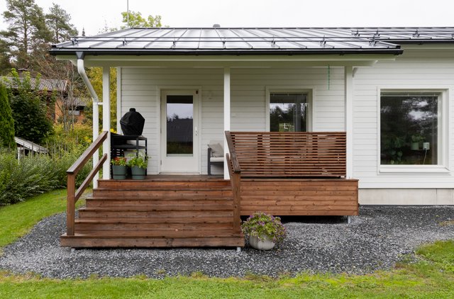 Poistoilmalämpöpumppu ja vesikiertoinen lattialämmitys pitävät kodin lämpimänä ja energiatehokkaana. Lisäksi talossa on varaus takalle ja ilmalämpöpumpulle.