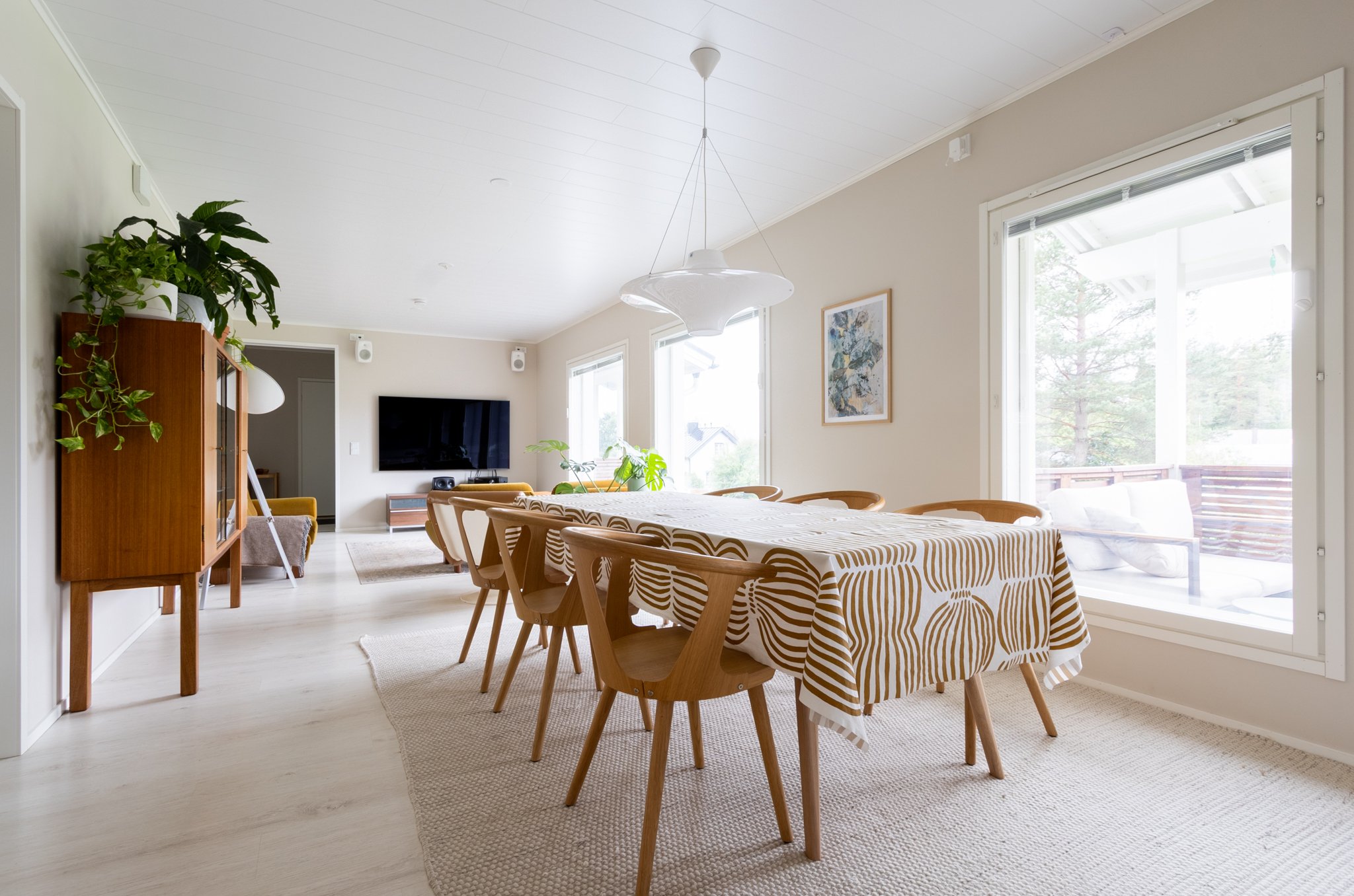 - Olohuone avointa tilaa ruokailutilan ja keittiön kanssa.