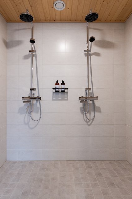 Eteisessä on peililiukuovikaapistot. Eteiskäytävän varrelta löytyy erillinen wc sekä vaatehuone. Kolme makuuhuonetta tarjoavat runsaasti tilaa ja jokaisessa on omat kaapistot. Kylpyhuoneessa on kaksi suihkua ja saunassa Harvian tornikiuas takaa rentouttavat löylyhetket. Kodinhoitohuoneessa on taso- ja säilytystilaa sekä oma uloskäynti.